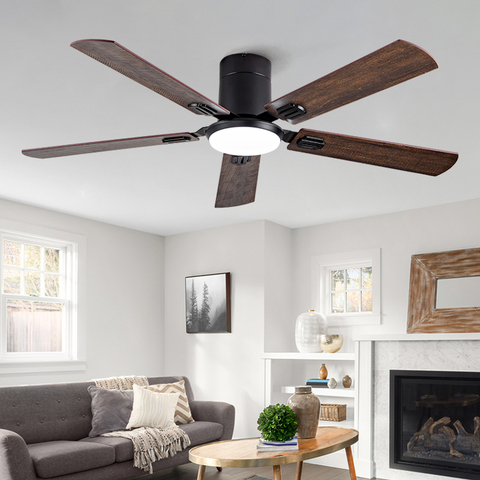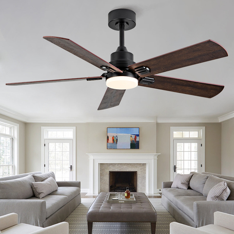 Ventilador de techo negro moderno de 52 pulgadas, 5 aspas de nogal profundas, silencioso, Reversible, Motor de CC, ventilador de techo LED con luz, ventilador de techo grande