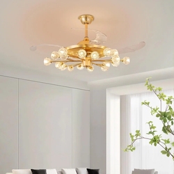 Candelabro de lujo con control remoto de estilo europeo moderno, aspas retráctiles invisibles, ventilador de techo con luz