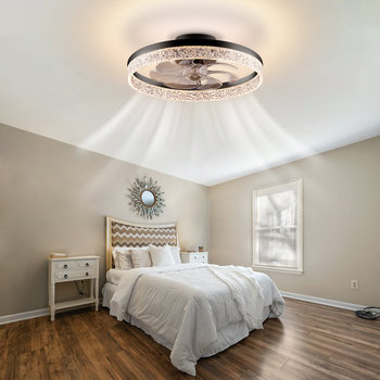 พัดลมเพดานที่มองไม่เห็นโคมไฟระย้าควบคุมระยะไกลสไตล์ยุโรปที่ทันสมัยหรูหรา